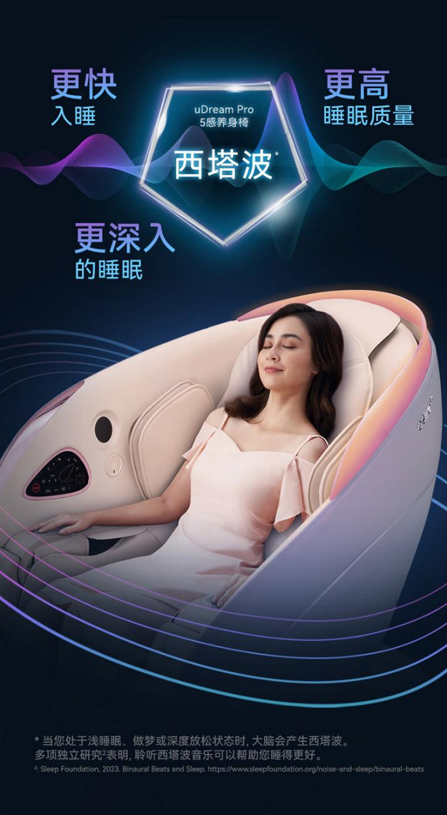 OSIM傲胜uDream Pro 5感养身椅以好眠时光程序,编织夏日美梦