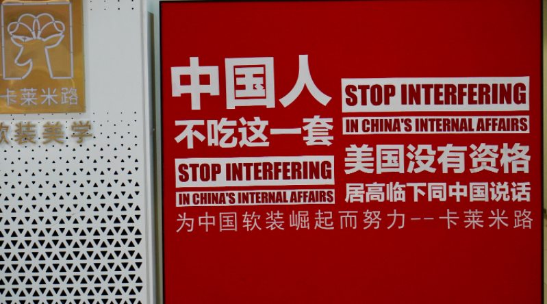 正如在“卡莱米路”展厅看到的一幅剌绣产品中所说的:“中国人不吃这一套,美国没有资格居高临下同中国说话”。卡莱米路——为中国软装崛起而努力!