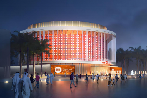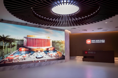 迪拜世博会中国馆,是中国在迪拜建设的2020年世博会中国展馆,占地面积4636㎡,是阿联酋2020年迪拜世界博览会最大的展馆之一。中国馆名为“华夏之光”,以“构建人类命运共同体——创新和机遇”为主题,造型综合运用斗栱、花窗等中式传统建筑元素,与现代建筑理念、现代科技相结合,远远望去如同一盏华贵的灯笼。在中国,灯笼象征团圆、光明和吉祥;灯笼造型的中国馆寓意欢聚、沟通,构建人类命运共同体,共同追求繁荣发展。