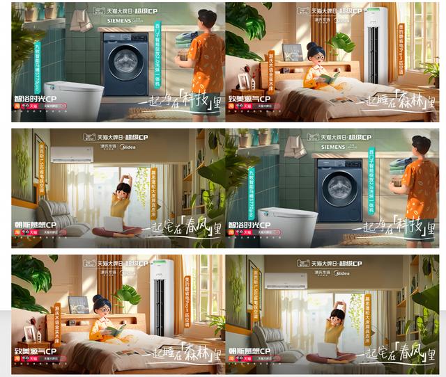 天猫的跨品类营销也开始发力。3月,天猫上线了家电品牌与家装品牌的天猫大牌日「超级CP」梦幻联动,品牌跨界携手,重磅上新。西门子X九牧,美的 X 源氏木语等多对CP上线,家场景创新搭配,灵感无限涌动,每一对「超级CP」,都是对舒适生活的重新定义。